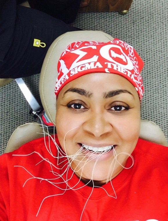 Here I am getting my upper braces installed last July. No eye shadow, but it looks like I’m wearing a nude shadow.