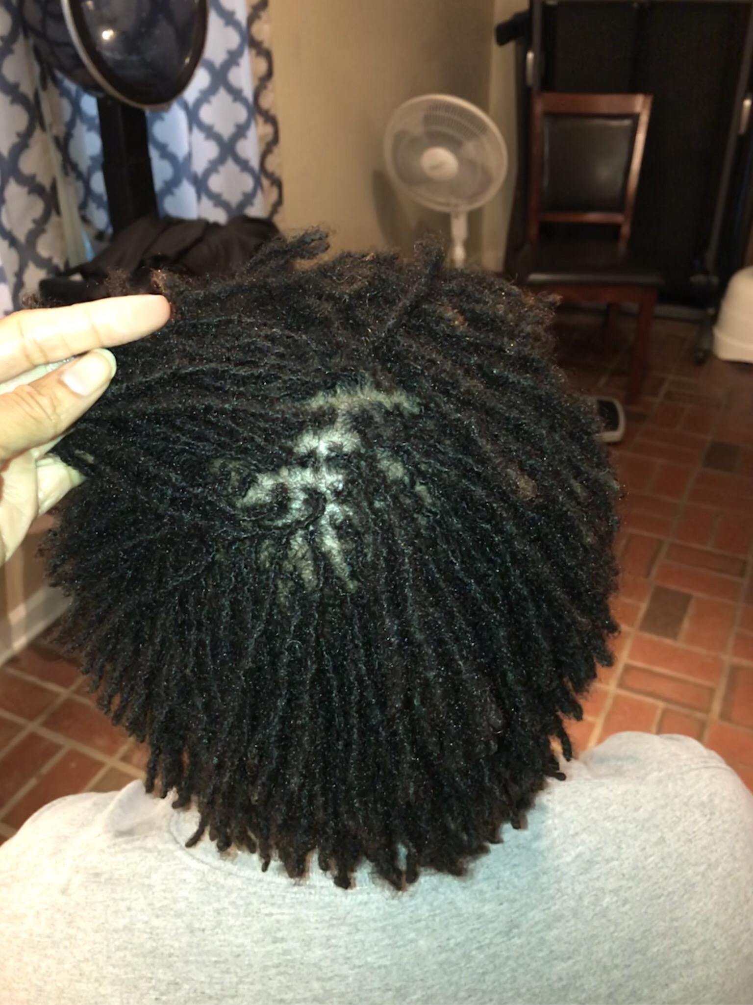 ck of my Locs – post-retightening session on 10/15/17. Getting some hang time now! I’m still only shampooing every two weeks with peppermint Castile soap and every other day spritz of Rose water.
