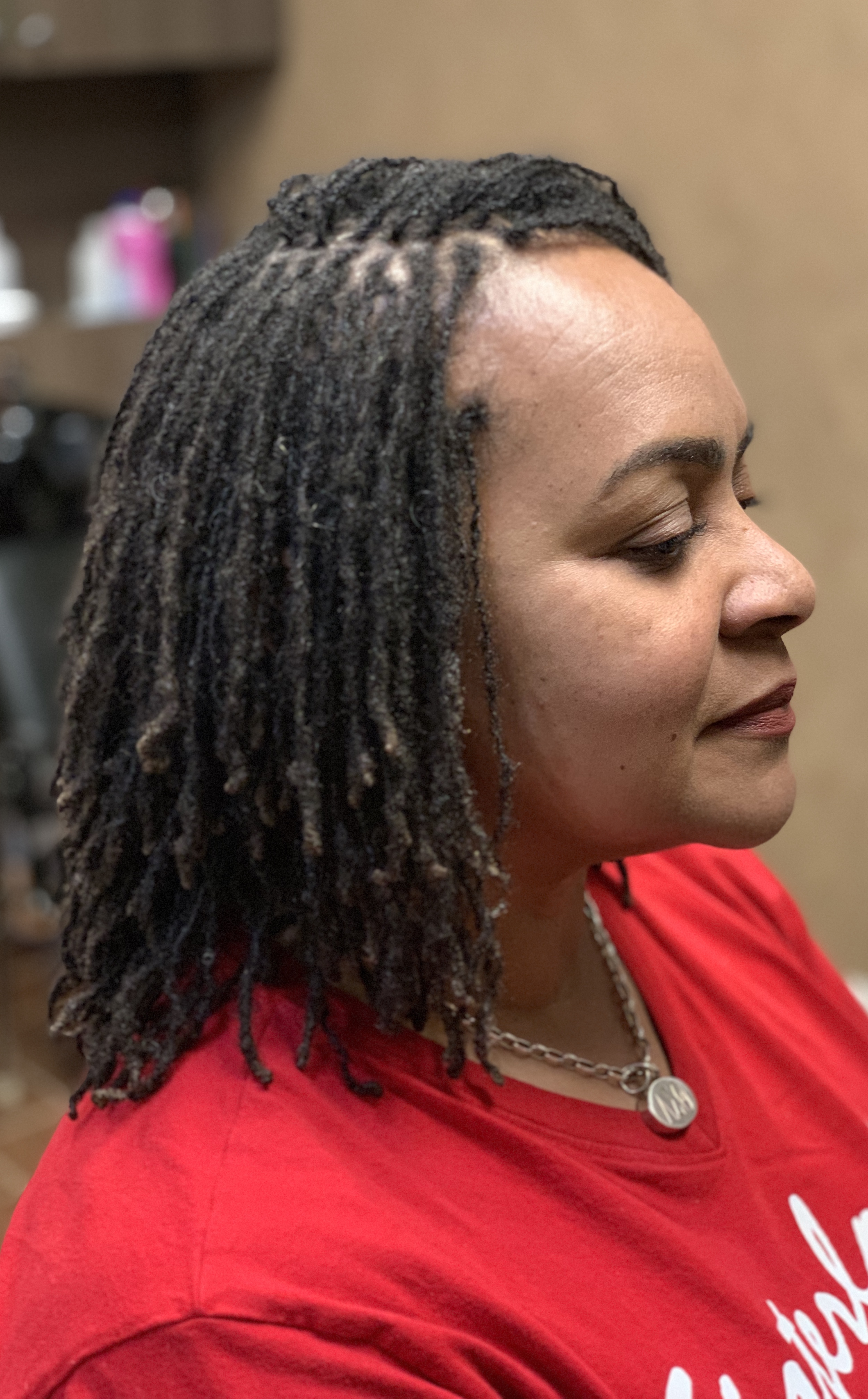 When I was a loose natural, I could have opened a store with all of the products I purchased. It was necessary; I learned so much about my natural curl pattern and the types of products my hair craved, but with Sisterlocks, no extra products are needed.