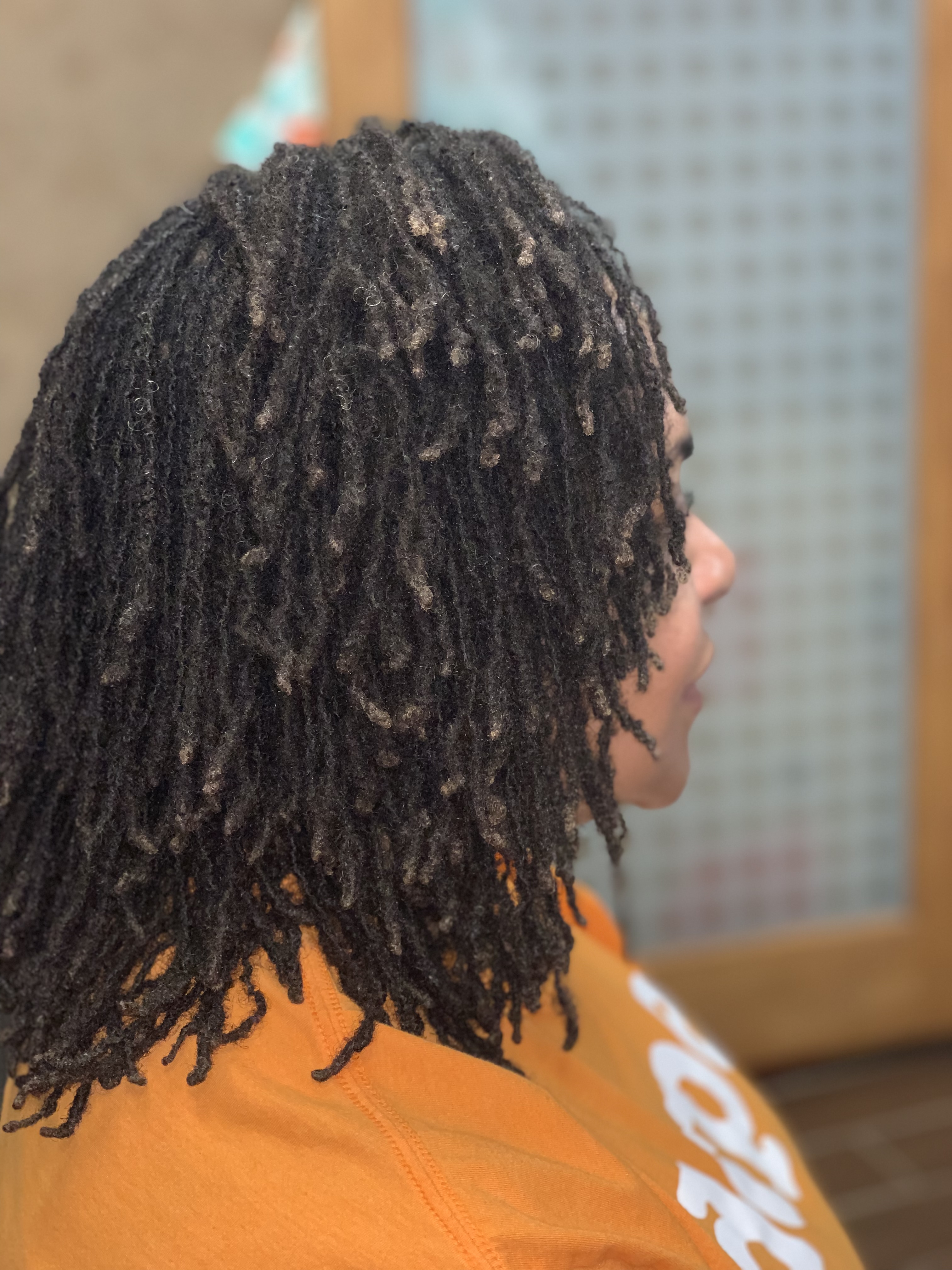 Sometimes when I look at pictures of my hair from install until now, I’m amazed. It was a bit spacey and reminiscent of the varied textures of my ‘fro: straight, curly, frizzy, coarse, soft, wavy, and short. I was so proud of my baby locs, and I remember feeling anxious for others to see them. Without a doubt, it was a freedom that I never quite had known until that moment. My babies shrank to half their size, over the course of the first week, and I became obsessed with its texture and look. Not having to comb my hair was such a novelty; I tossed my combs and brushes into the garbage like some kind of liberation ritual.