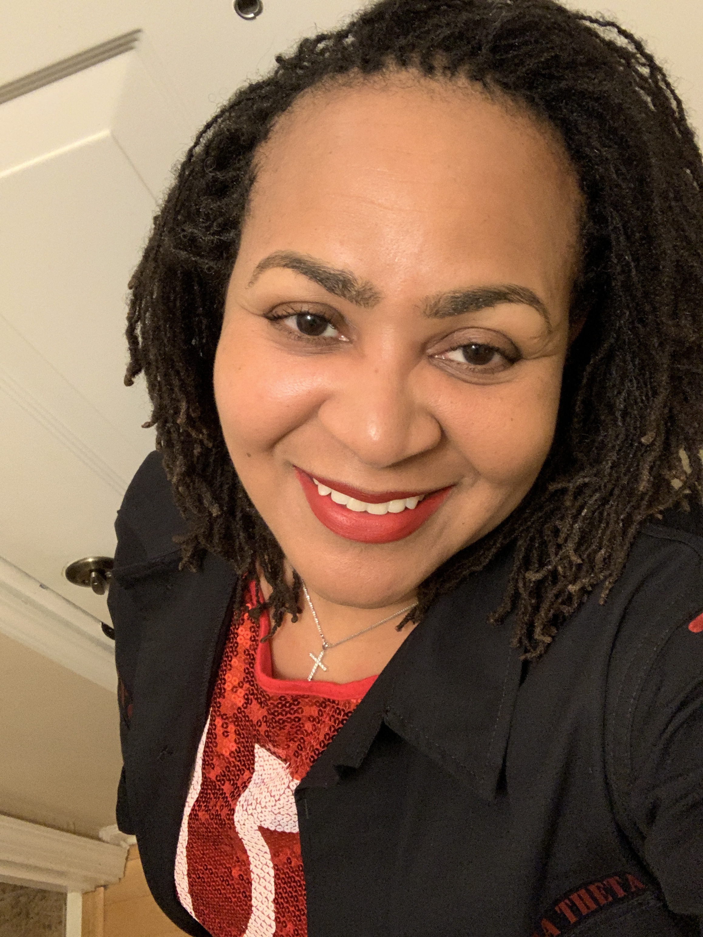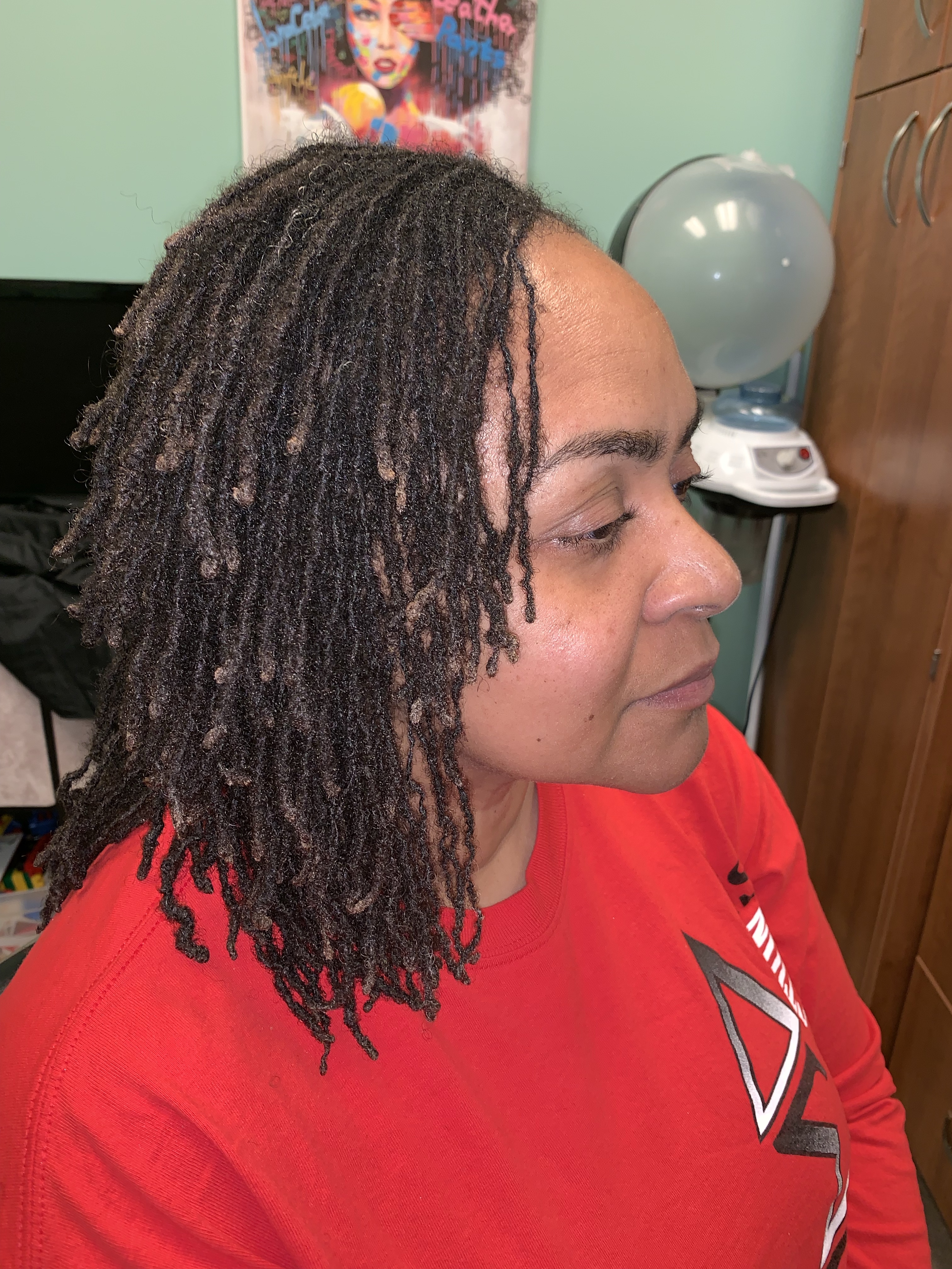 And by comparison…me, two years ago, same outfit, baby locs. 🥰